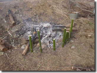 焚き火の遠赤効果と溶け出した竹の成分のためでしょうか、まろやかで、実にうまく何杯も何杯も杯をかたむけました。